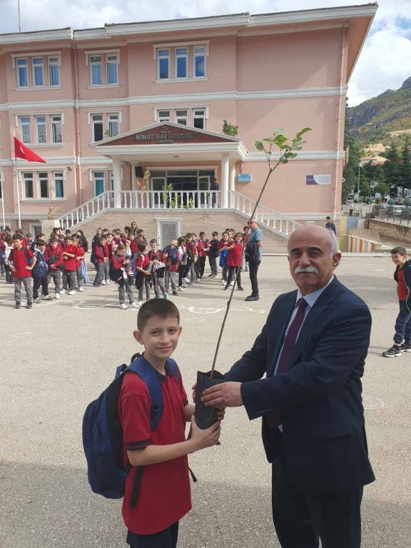 "Yeşil Vatan-Benim Okulum Geleceğe Çare" projesi kapsamında okulumuzda fidan dağıtımı gerçekleştirildi.